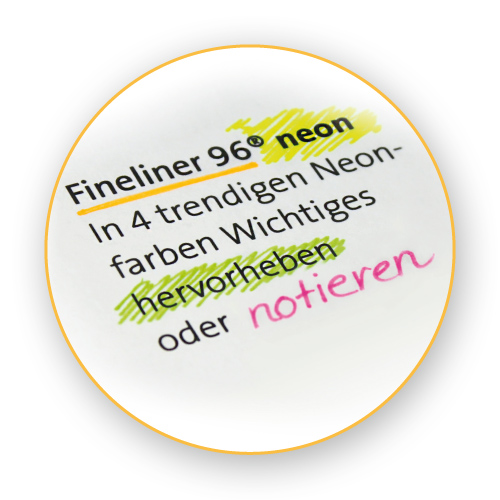 USP | • Neu in 4 Neonfarben: Leuchtgelb, Leuchtorange, Leuchtgrün, Leuchtpink, Metallgefasste Spitze • Ergonomisches Griffprofil • Strichstärke 0,4 mm • Made in Germany |