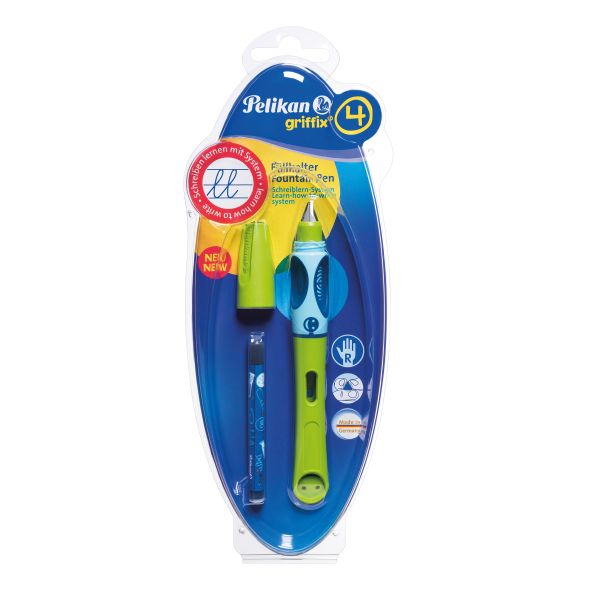 | USP | griffix® Vierstufiges Schreiblern-System; Mit Wissenschaftlern und Lehrern entwickelt Ergonomisches Design; Made in Germany; 4. Füllhalter: Oberste Stufe im Lernprozess; Elernen formgerechten Schreibens; Zangengriff für die optimale Schreibhaltung; Blisterverpackung mit Refills und Namenschild |