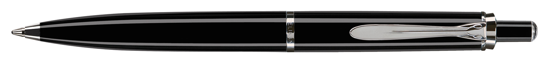 The writing instruments in these series are the epitome of classical writing culture. Featuring a perfect appearance with an unmistakable Pelikan design, they form the elegant writing instruments of our timeless, beautiful Classic series. The deep black casing material consists of high-gloss, polished high-grade resin. Through the use the material tends to polish itself which gives the writing instrument its long-lasting shine. All highlights, like the traditional beak-like clip and the rings are silver chrome-plated. The ball pen with push-button mechanism comes with a large capacity black refill.