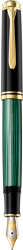 Souverän - A world-famous classic. Even today, this classic with a black-and-green pinstripe sleeve is still considered a symbol of the Pelikan brand worldwide. The production of the Souverän sleeve is subject to an elaborate process. The typical, striped material is made out of cotton based on a formula developed specially for Pelikan It takes month until the block providing the stripes is finished, whereupon the tailor-made plating is curved and cut into a contour using a natural diamond. The characteristic double rings are then integrated into the cap and barrel with the utmost precision. The writing instrument is then polished until it reaches a brilliant luster. The fountain pen M800 with piston filling mechanism consists of a 18-carat bi-color gold nib with rhodium trim and is available with the nib sizes EF, F, M or B. The M nib creates a medium typeface and is suitable for handwritings with bigger swings. |