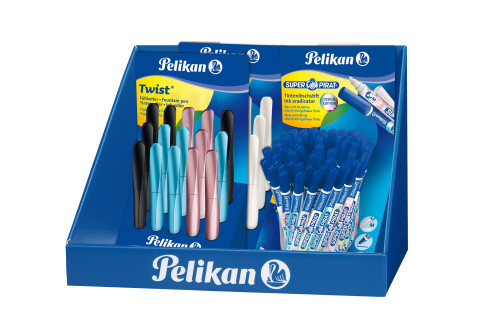 Pelikan Twist Fountain pens, nib size M and ink rollerballs, mixed colors Black, Frosted Blue and Girly Rose, suitable for both right- and lefthanders |