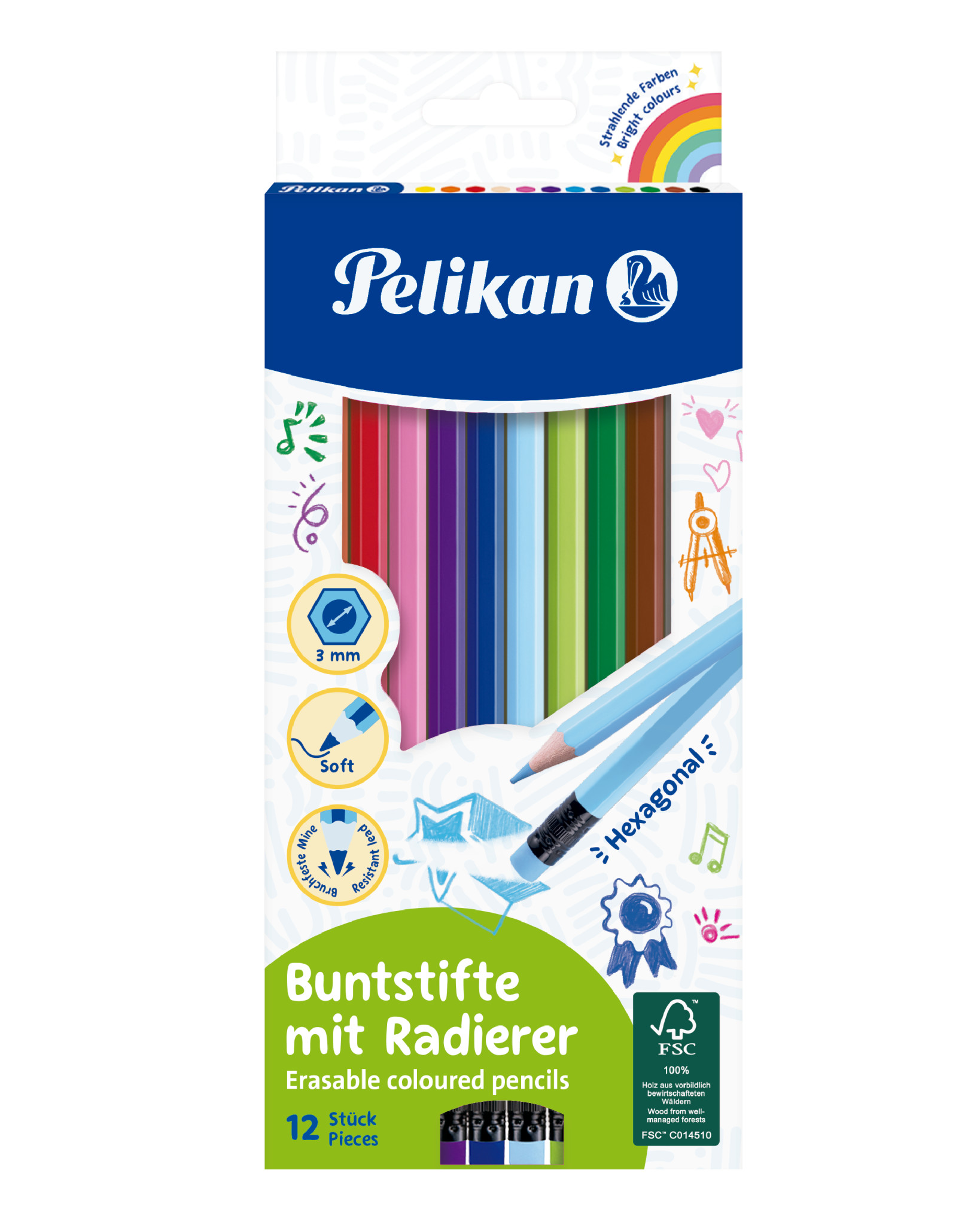 Pelikan Buntstifte sechseckige Holzstifte Packung mit 12 Pastell-Farbe...
